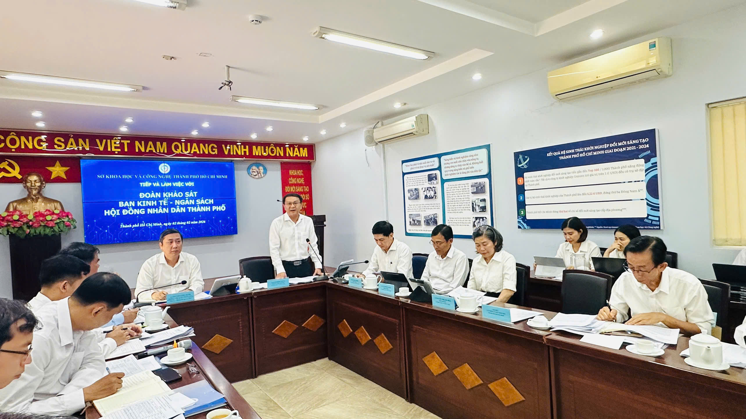 Chiều ngày 02/02/2026, tại trụ sở Sở Khoa học và Công nghệ (số 244 Điện Biên Phủ, Phường Xuân Hòa), Ban Kinh tế - Ngân sách Hội đồng nhân dân Thành phố Hồ Chí Minh đã tổ chức buổi khảo sát chuyên đề đối với Sở Khoa học và Công nghệ nhằm đánh giá kết quả triển khai các chủ trương, chính sách lớn của Trung ương và Quốc hội về phát triển khoa học, công nghệ, đổi mới sáng tạo và chuyển đổi số trên địa bàn Thành phố.