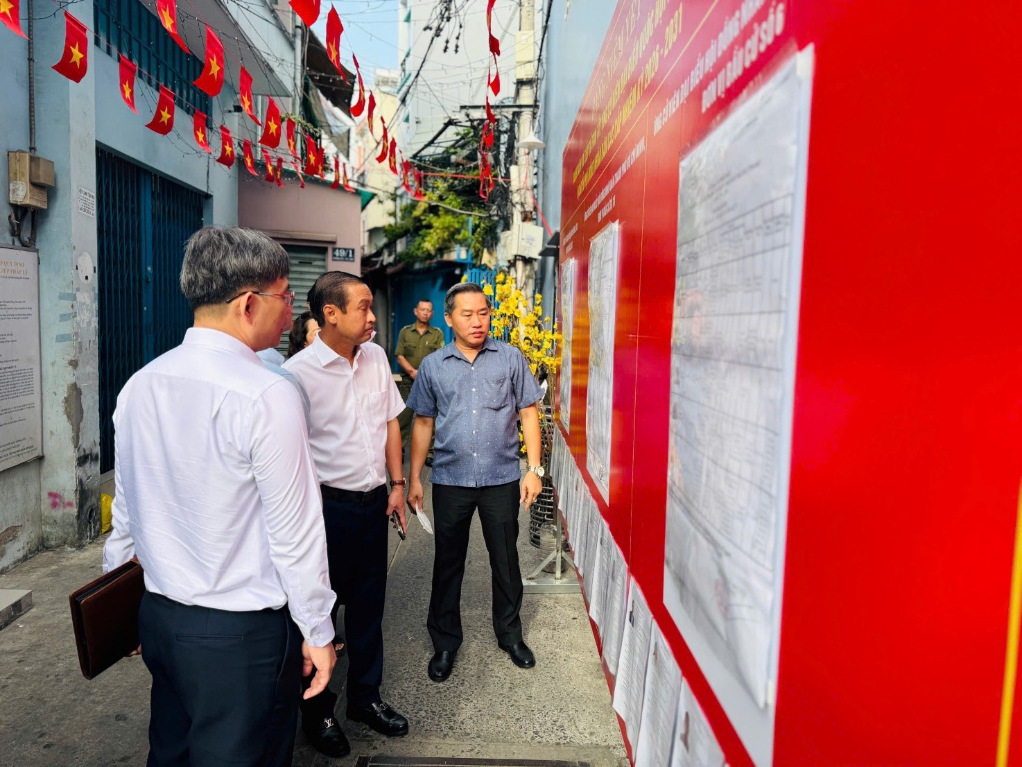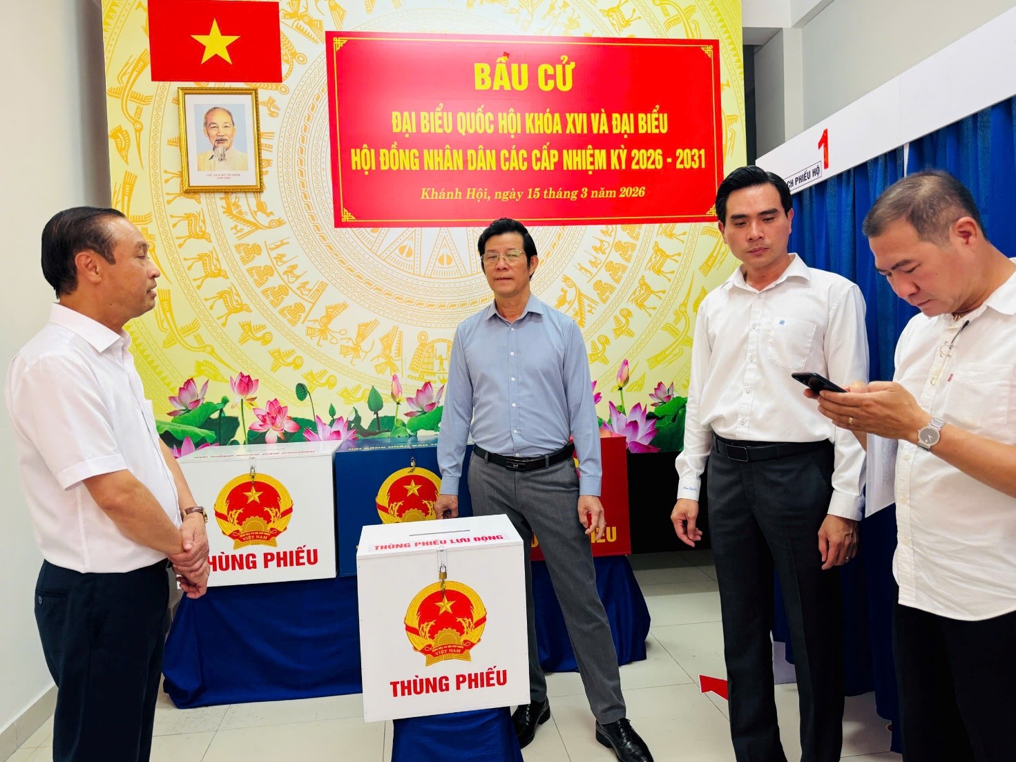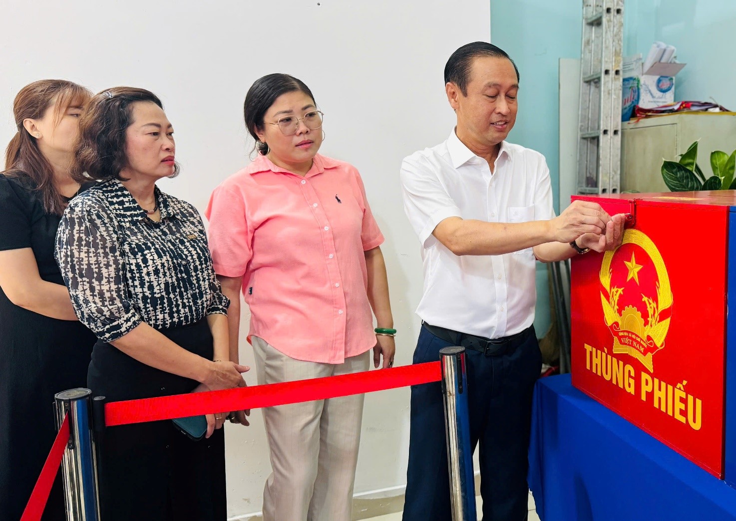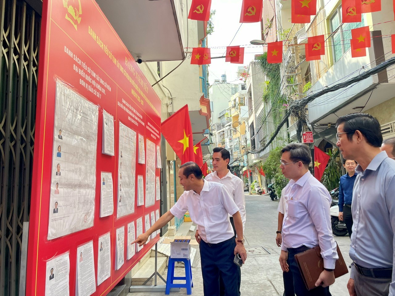 Đoàn công tác đã kiểm tra 06 khu vực bỏ phiếu trên địa bàn các phường Vĩnh Hội (Khu vực bỏ phiếu số 13 - Điểm sinh hoạt khu phố 17), phường Khánh Hội (Khu vực bỏ phiếu số 10 - Công ty TNHH MTV DVCI Quận 4 cũ), phường Bình Trưng (Khu vực bỏ phiếu số 17 - Khu đất sân banh số 27 Nguyễn Tư Nghiêm), phường Cát Lái (Khu vực bỏ phiếu số 16 - Trụ sở Khu phố 24), phường Long Trường (Khu vực bỏ phiếu số 30 - Quán café Nhà Gỗ khu dân cư Centrana) và phường Phước Long (Khu vực bỏ phiếu số 8, 9, 10 - Sân bóng đá 146 Nam Hòa).