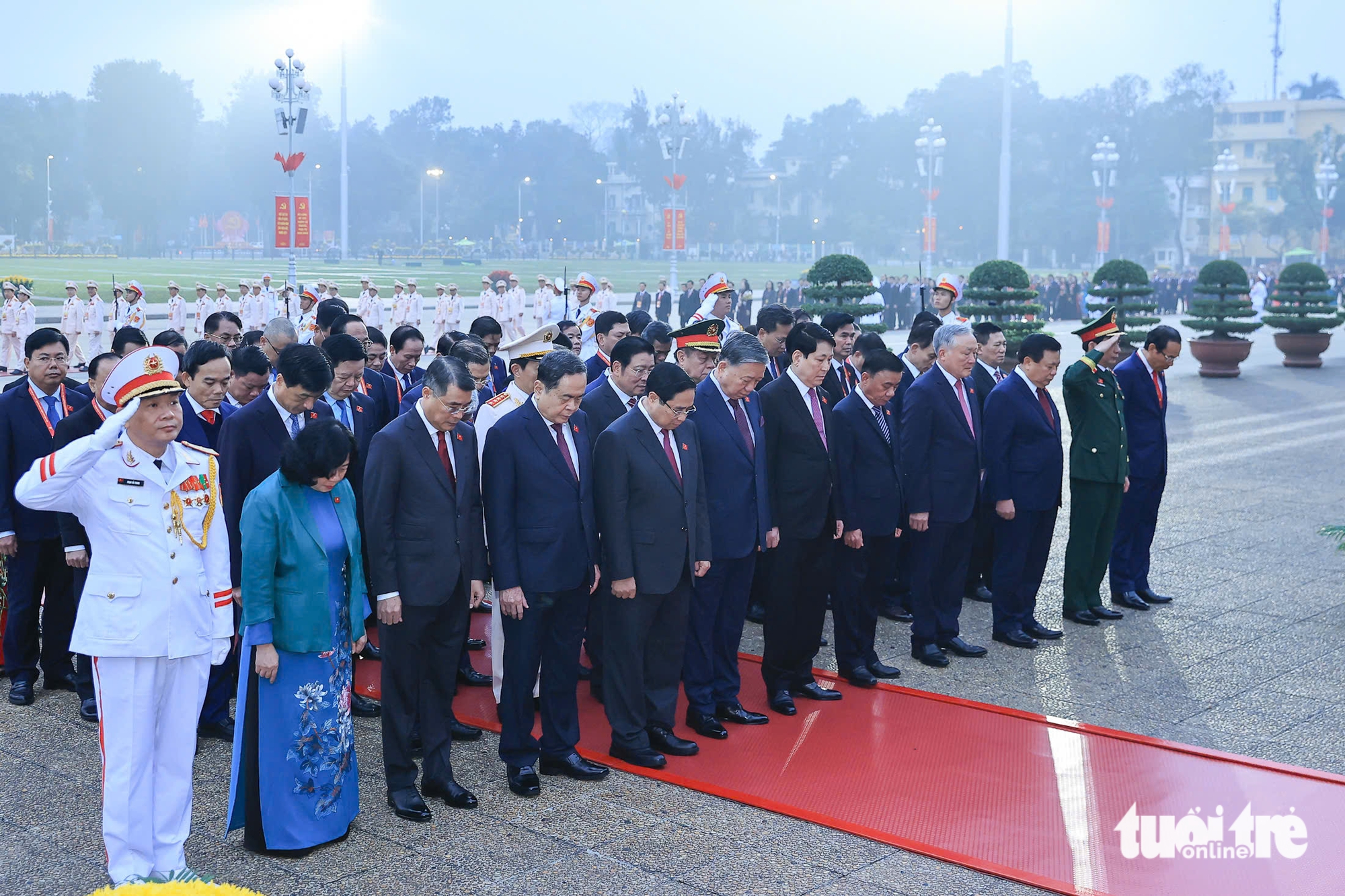 Tổng Bí thư Tô Lâm, Chủ tịch nước Lương Cường, Thủ tướng Phạm Minh Chính, Chủ tịch Quốc hội Trần Thanh Mẫn và các lãnh đạo Đảng, Nhà nước, đại biểu vào lăng viếng Chủ tịch Hồ Chí Minh - Ảnh: NGUYỄN KHÁNH