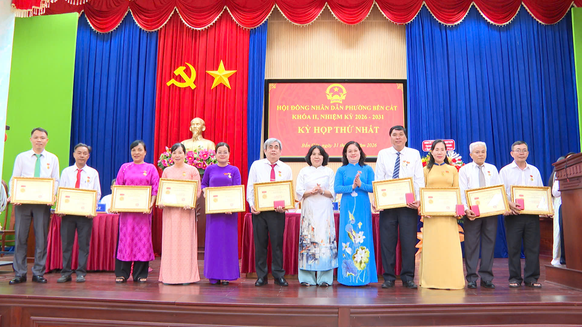 Sáng 31/3/2026 tại Hội trường phường, HĐND phường Bến Cát (TP. Hồ Chí Minh) khóa II, nhiệm kỳ 2026 – 2031 đã tổ chức Kỳ họp thứ nhất để kiện toàn bộ máy chính quyền địa phương sau bầu cử. Dự và chủ trì hội nghị có bà Nguyễn Thị Mỹ Hằng - Ủy viên Ban Thường vụ Thành ủy, Bí thư Đảng ủy, Chủ tịch HĐND phường.