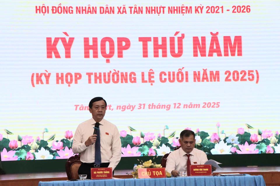 Kết thúc kỳ họp, HĐND xã Tân Nhựt đã biểu quyết thông qua 5 Nghị quyết của HĐND xã, gồm: Nghị quyết về kế hoạch phát triển kinh tế - xã hội, quốc phòng - an ninh năm 2026; Nghị quyết về kế hoạch đầu tư xây dựng cơ bản năm 2026 và kế hoạch vốn trung hạn giai đoạn 2026 - 2030; Nghị quyết về phân bổ dự toán ngân sách Nhà nước; dự toán thu, chi ngân sách xã và phân bổ dự toán ngân sách xã năm 2026; Nghị quyết về chương trình hoạt động Quý 1 - 2026 của HĐND xã Tân Nhựt, nhiệm kỳ 2021 - 2026 và Nghị quyết Kỳ họp thứ Năm HĐND xã khóa XII, nhiệm kỳ 2021-2026, qua đó tạo cơ sở pháp lý cho công tác điều hành, phát triển địa phương trong năm 2026.