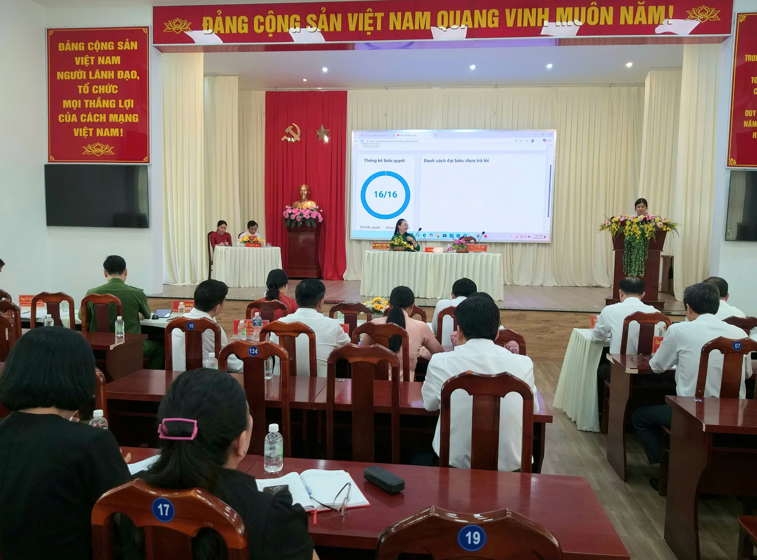 Với tinh thần dân chủ, trách nhiệm, sau khi xem xét các tờ trình của Thường trực HĐND phường, 16/16 đại biểu có mặt đã bấm nút biểu quyết thông qua 5 Nghị quyết: thành lập Tổ Đại biểu HĐND và chỉ định Tổ trưởng, Tổ phó các Tổ Đại biểu HĐND phường Tân Thành khóa II, nhiệm kỳ 2026-2031; ban hành Quy chế làm việc của HĐND phường Tân Thành khóa II, nhiệm kỳ 2026-2031 (gồm 9 Chương, 22 Điều); ban hành Quy chế tiếp công dân của Thường trực HĐND và Đại biểu HĐND phường Tân Thành khóa II, nhiệm kỳ 2026-2031 (gồm 5 Chương, 23 Điều); ban hành Quy chế phối hợp công tác giữa Thường trực HĐND, Thường trực UBND và Ban Thường trực Ủy ban MTTQ Việt Nam phường nhiệm kỳ 2026-2031 (gồm 3 Chương, 12 Điều); phê chuẩn Chương trình hoạt động giám sát của HĐND phường năm 2026.