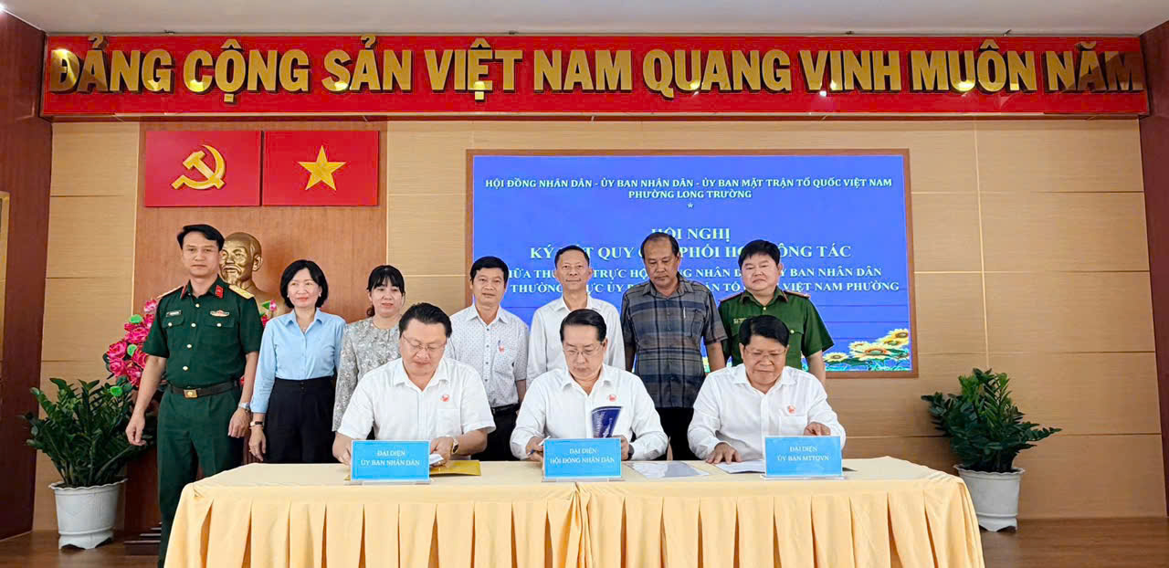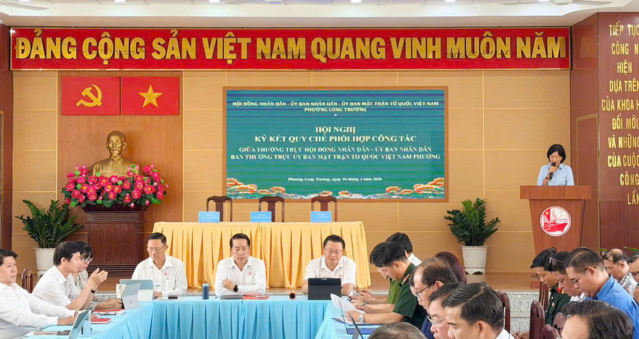 Sáng ngày 16/4/2026, Thường trực Hội đồng nhân dân, Ủy ban nhân dân và Ban Thường trực Ủy ban Mặt trận Tổ quốc Việt Nam phường Long Trường tổ chức Hội nghị ký kết Quy chế phối hợp công tác nhiệm kỳ 2026 – 2031 tại Hội trường A, trụ sở Đảng ủy phường.