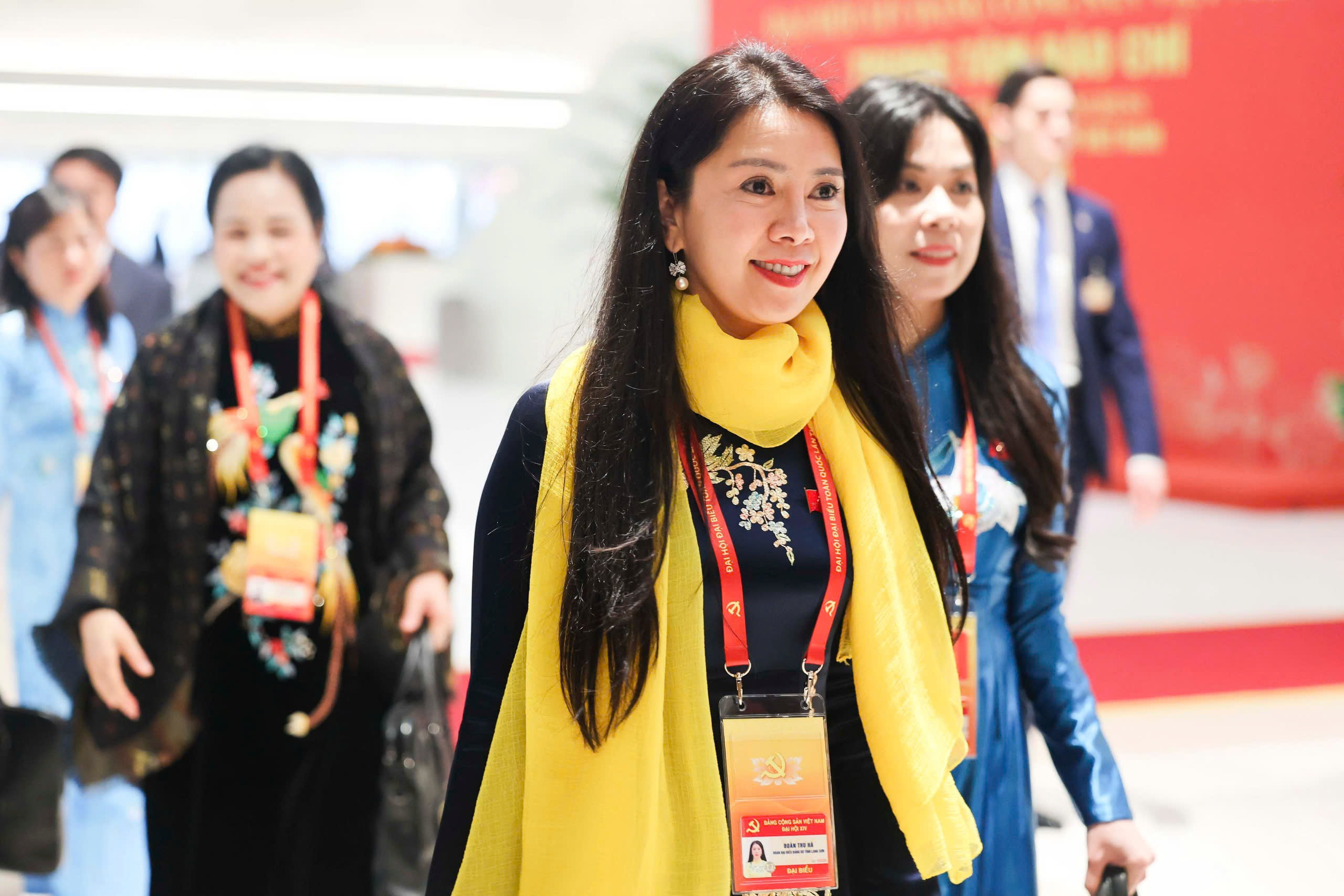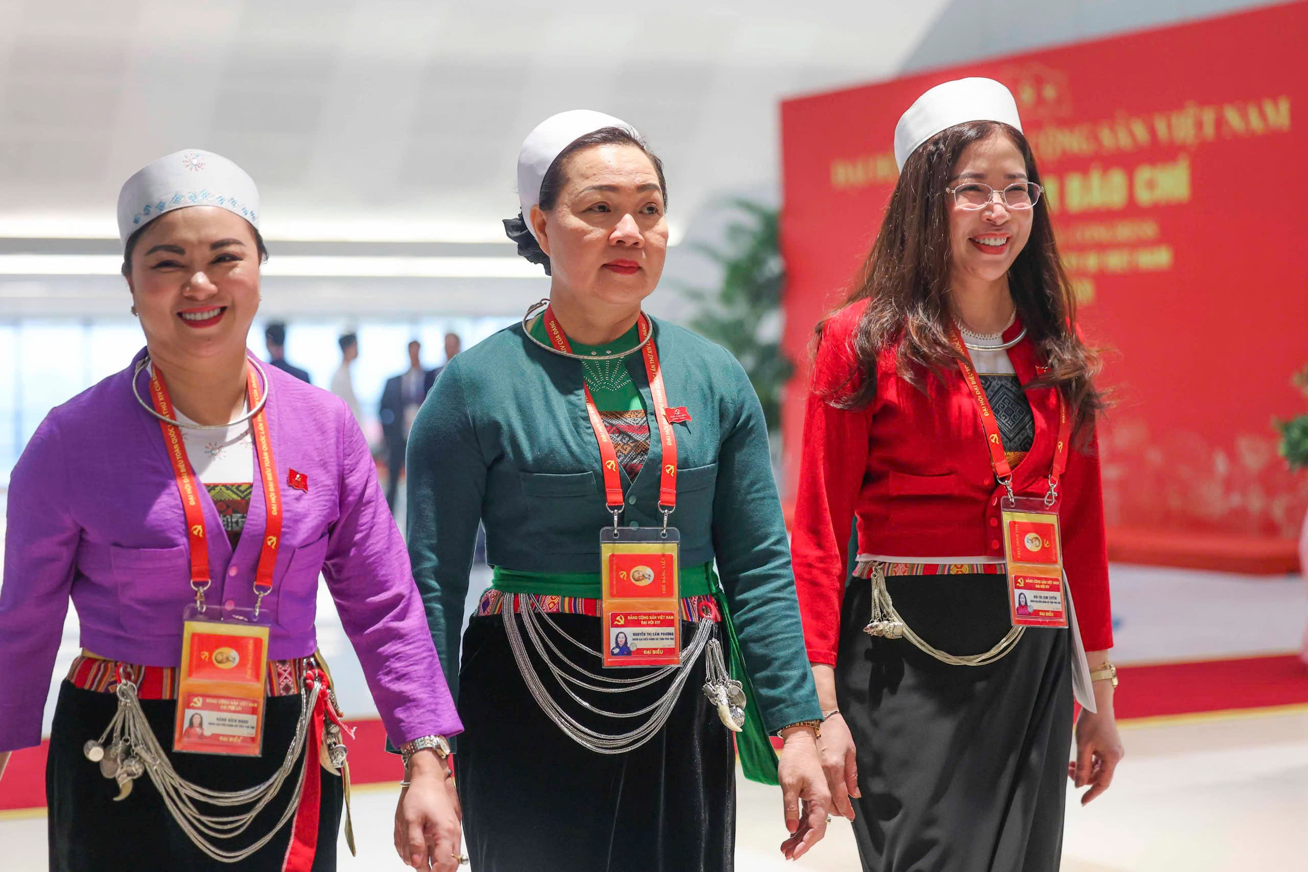 Ba nữ đại biểu Đoàn đại biểu Đảng bộ tỉnh Phú Thọ dự phiên trù bị - Ảnh: NGUYỄN KHÁNH