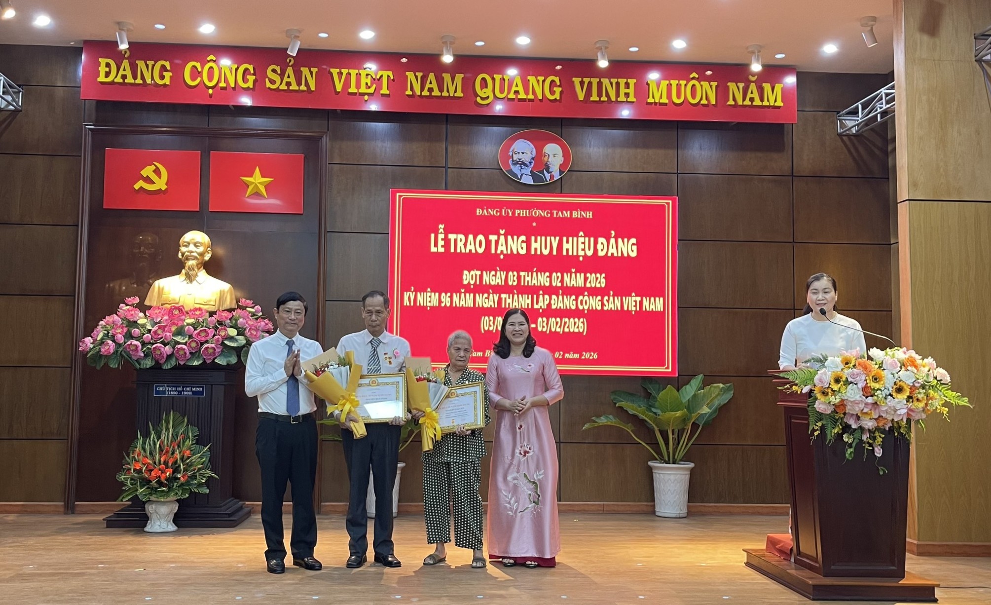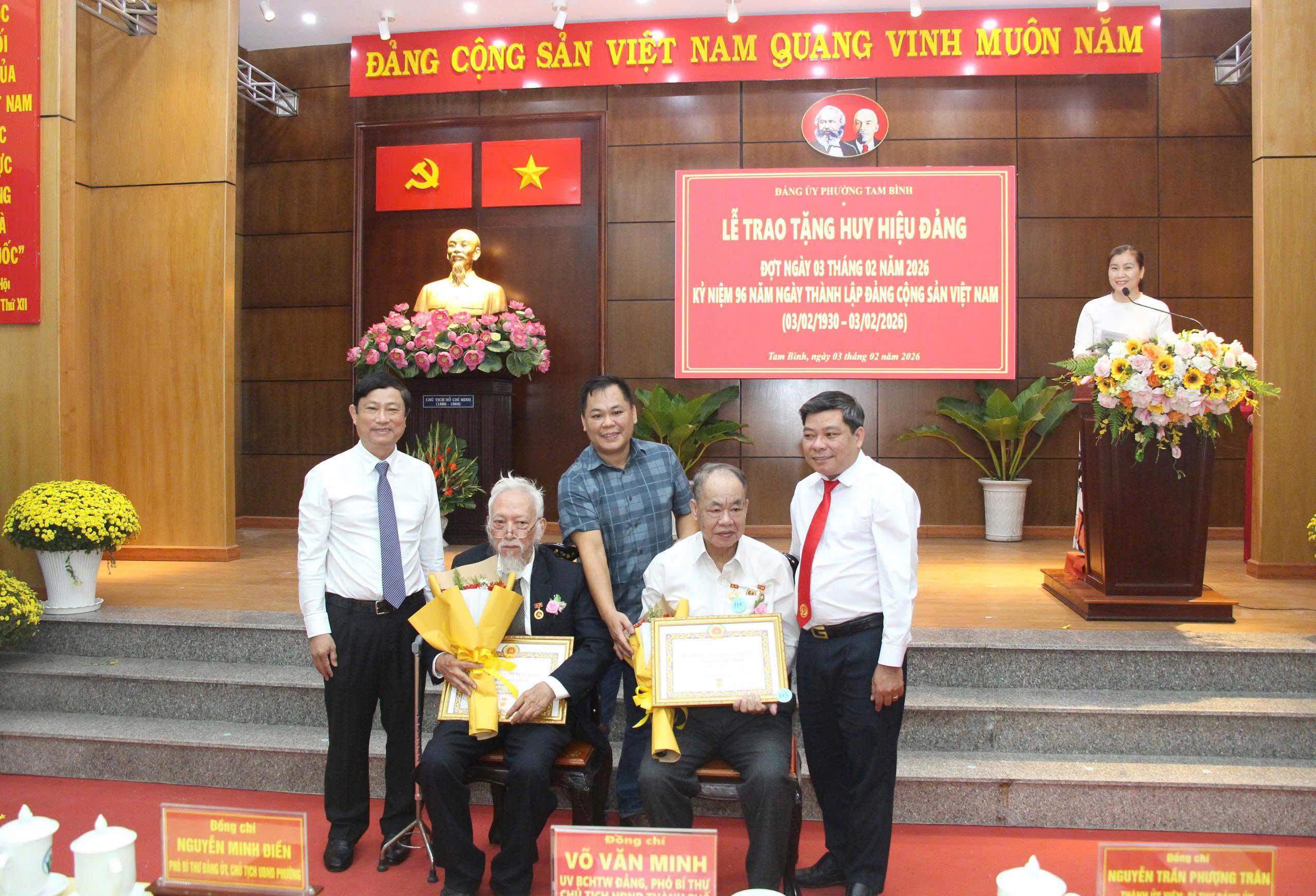 Mở đầu hành trình công tác trong niềm tự hào của những ngày tháng Hai lịch sử, đồng chí Võ Văn Minh đã đến dự và trực tiếp trao tặng Huy hiệu Đảng cho các đảng viên lão thành tại phường Tam Bình, nhằm tôn vinh và tri ân những cống hiến tận tụy, sự hy sinh thầm lặng nhưng vô cùng cao quý của các thế hệ đảng viên đi trước nhân kỷ niệm 96 năm Ngày thành lập Đảng Cộng sản Việt Nam quang vinh (03/02/1930 – 03/02/2026). Trước anh linh Chủ tịch Hồ Chí Minh và dưới lá cờ Đảng, việc trao tặng tấm Huy hiệu cao quý này là lời khẳng định sắt son về niềm tin, sự tiếp nối truyền thống và lòng biết ơn của Đảng bộ, chính quyền Thành phố đối với những "pho sử sống" của cách mạng Việt Nam.