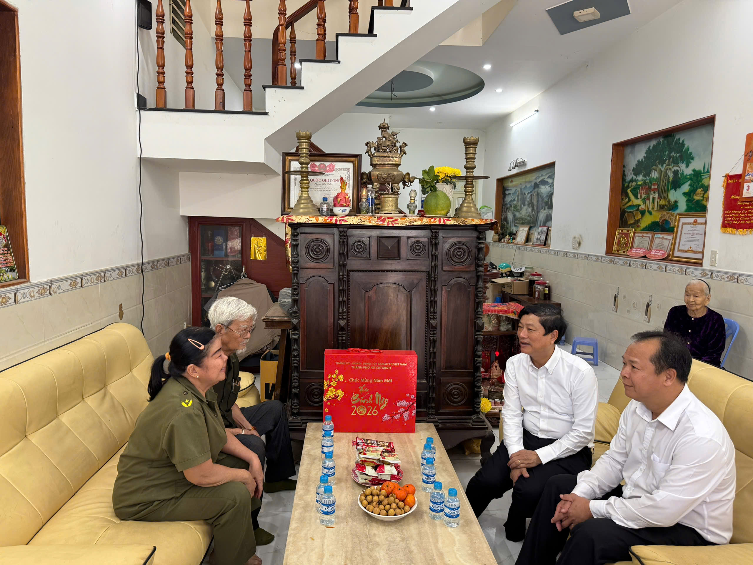 Đặc biệt, đoàn đã đến thăm trực tiếp tại gia đình cụ Châu Ngọc Thanh (100 tuổi) và cụ Lê Thị Chiêm (101 tuổi). Hình ảnh người lãnh đạo Thành phố ngồi trò chuyện thân tình, trao tặng quà mừng thọ và quà Tết cho các bậc cao niên đã tô đậm nét đẹp truyền thống của dân tộc và sự gần dân của người cán bộ chính trị.